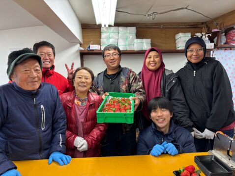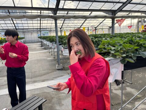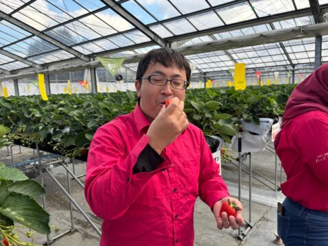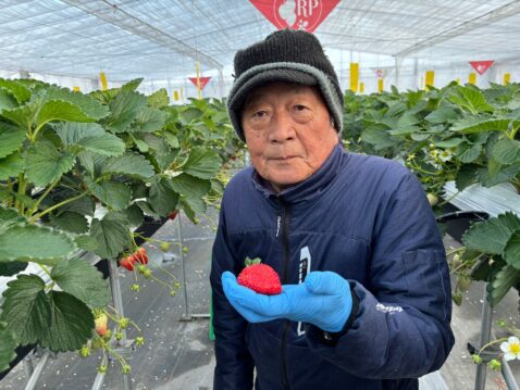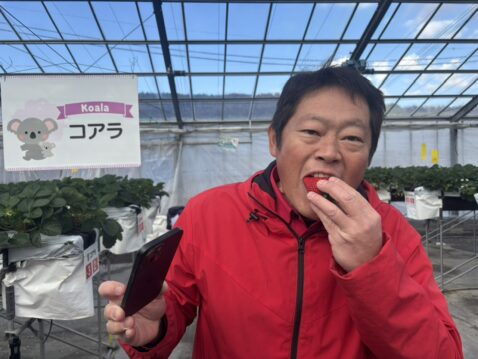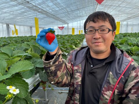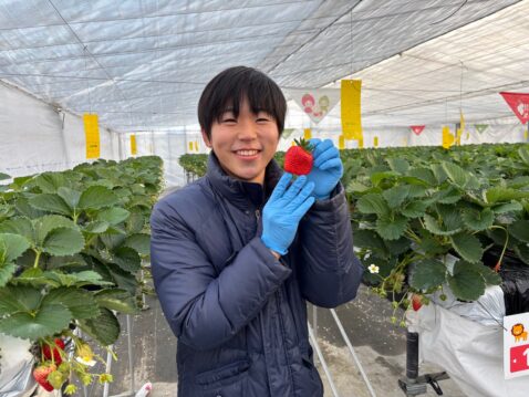 一番の新人さんであり、初めてのでかほっぺの収獲をした室伏君です。