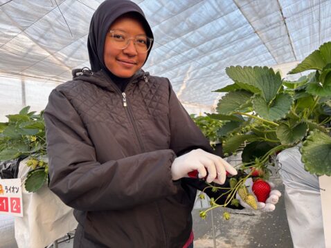 メリさんはインドネシアから来ていて、日本語を勉強し、仕事をしながら日本語資格を取得し、