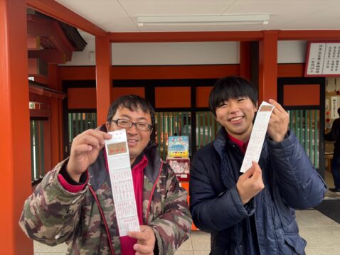 室伏君はくじ引き後も笑顔です。もしかしたら‥‥。大吉?かな?
