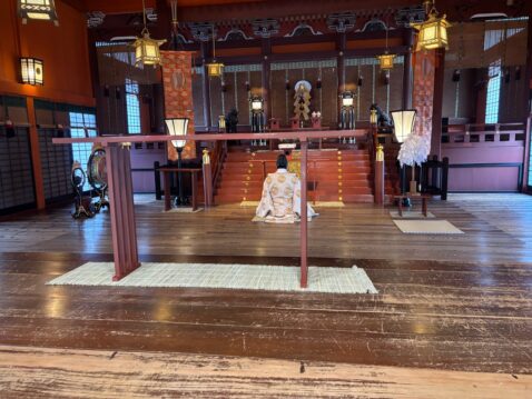 しばらくして本殿に案内されて奉納と安全と商売繁盛の祈願をしていただきました。