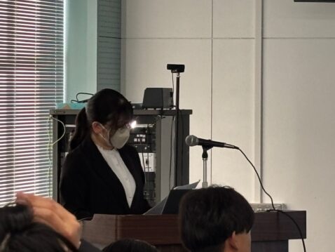 発表会が行われていた視聴覚室に行き、山田さんの発表を聞きました。