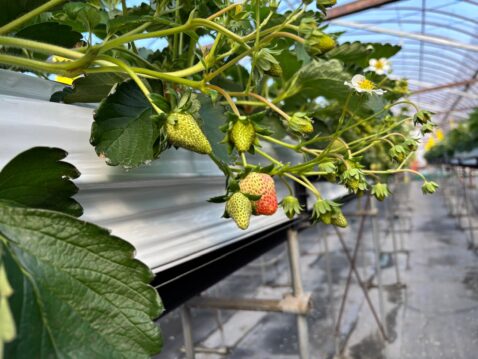 ハウスの中ではいよいよ苺が赤くなり始めました。
