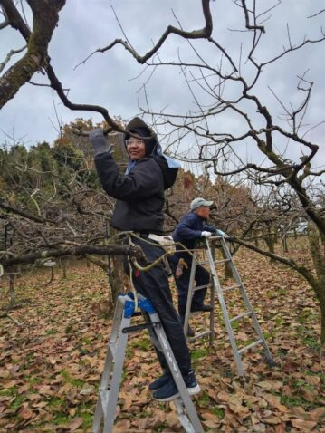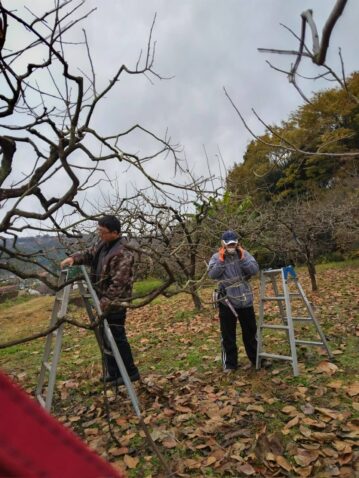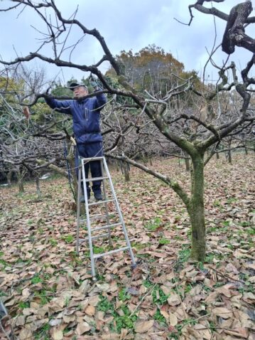 77歳の会長(父親)も脚立に乗って枝の手入れをしてくれています。