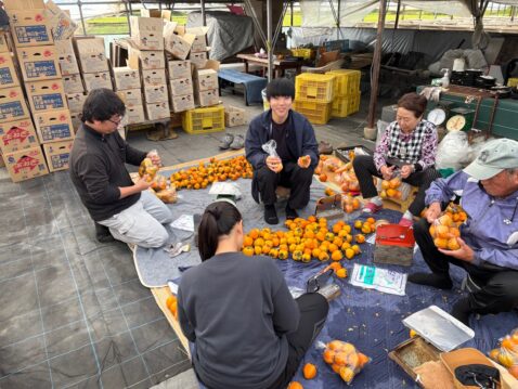 収獲した柿はコンテナに入れて、その後渋抜きに取り掛かります。