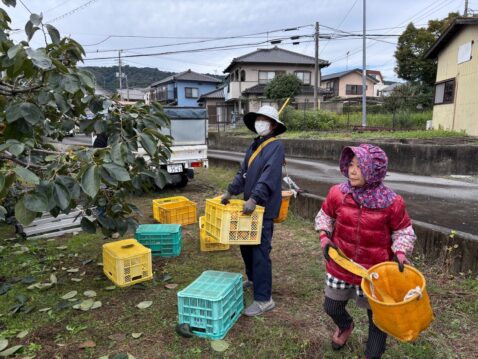 収獲した柿はコンテナに入れて、その後渋抜きに取り掛かります。