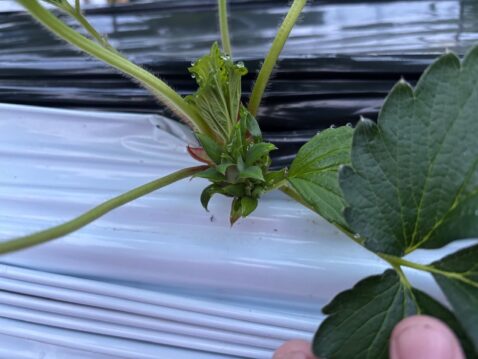 ハウスの苺たちは徐々に花が大きくなりつつあり、