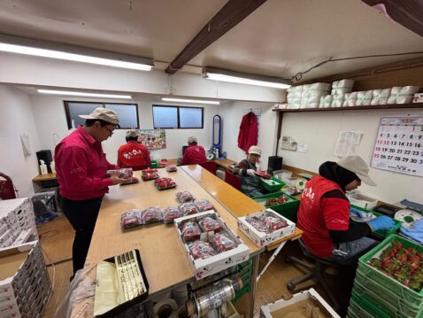 10時の開店までに、少しでも多くの苺をパック詰めしようと皆無言で黙々とパック詰めの作業をしてくれました。