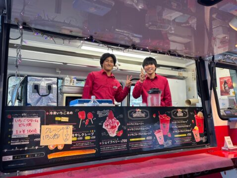 苺の収獲は勿論、苺摘みでのお客様対応、レジ接客、たまたま依頼を受けていた移動販売車での販売、